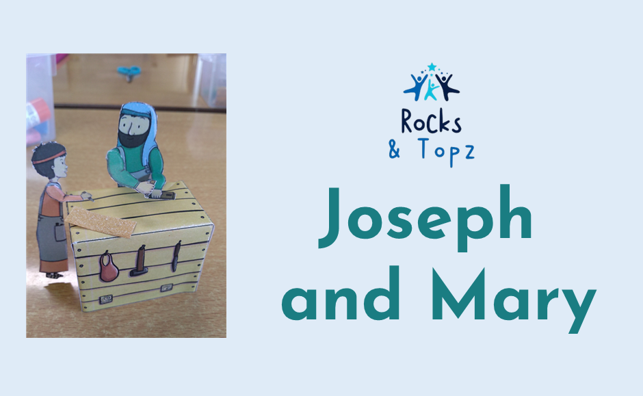 This week’s Rocks and Topz started with a quick memory game of baby items and this led us into talking about two amazing Bible characters – Joseph and Mary. As one of the children remarked – they had a ‘mind blowing’ experience when their lives were turned upside down at the first message from the angel and then at various other points in their lives. Both had a job to do given to them by God, to protect, nurture and grow this life that had been entrusted to them. The children made some models of Joseph teaching Jesus the skill of carpentry.
